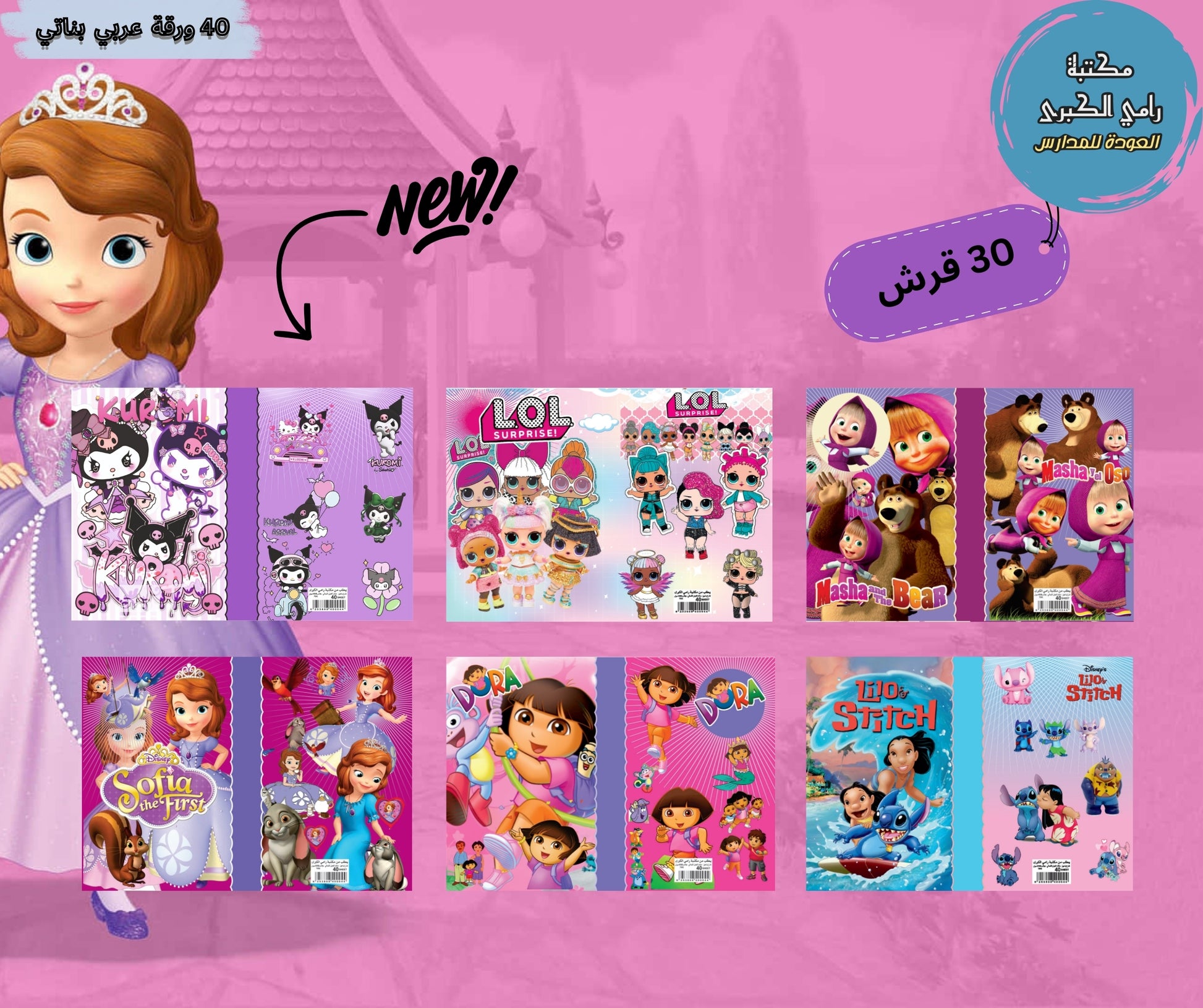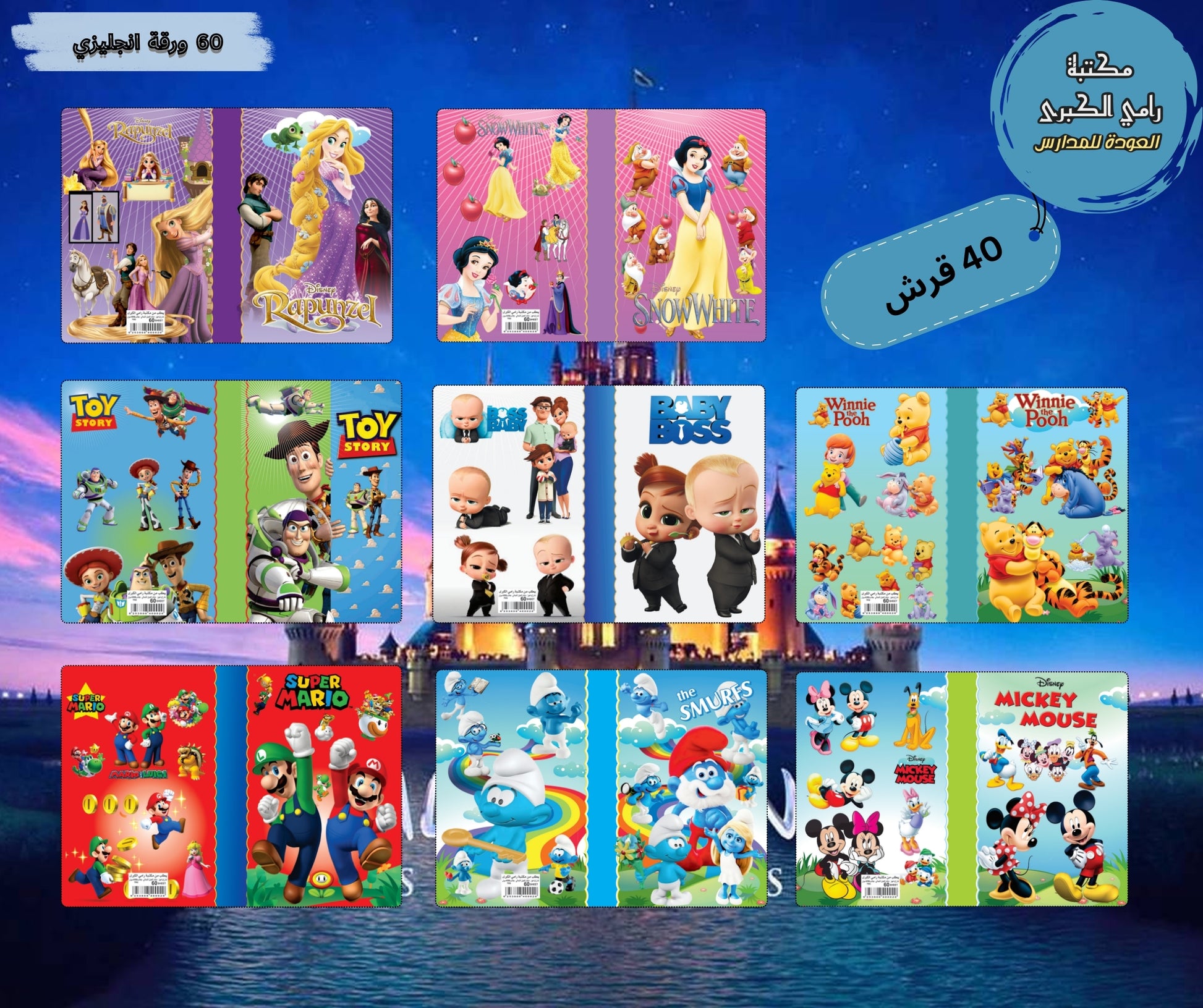 دفاتر ديزني المدرسي برسومات
